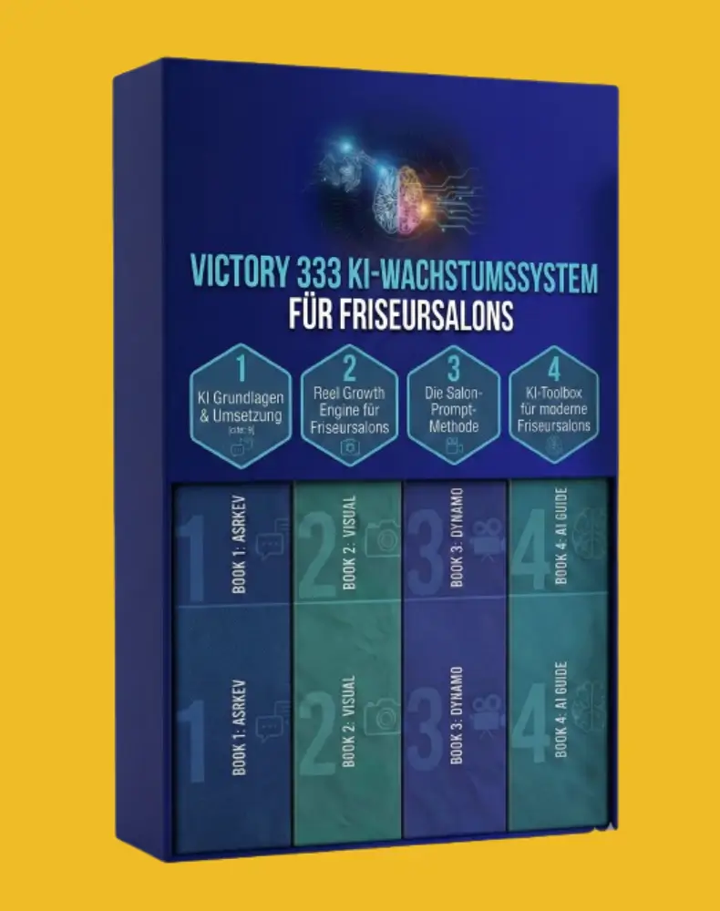 Mit dem Victory 333 KI-System lernen Friseursalons Schritt für Schritt, wie sie mit KI Content erstellen, mehr Sichtbarkeit auf Instagram aufbauen und regelmäßig neue Terminbuchungen gewinnen – ohne Technik-Stress.